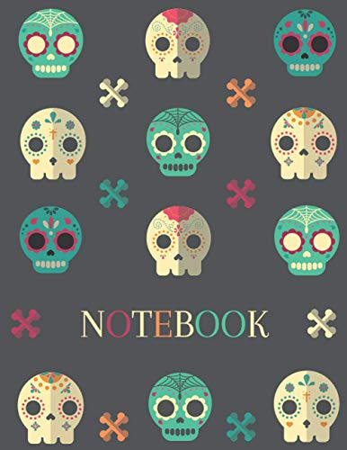 Notebook : Halloween skull, lined pages, white paper, large (8.5 x 11 inches), 120 pages: For journaling, writing, studying, composition, scribbling (Day of the death Cover)