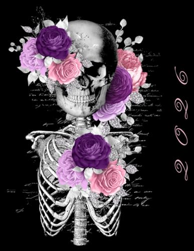 Halloween Elegant Skull and Ribcage with Purple and Pink Flowers: 2026 Weekly Planner