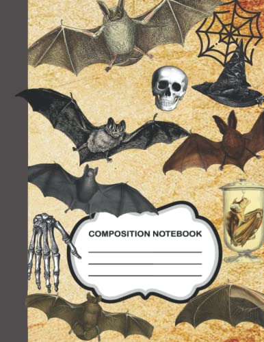 COMPOSITION NOTEBOOK : VINTAGE BATS SKULL WITCH HAT HALLOWEEN-THEMED,COLLEGE RULED: FOR BACK TO SCHOOL SEASON, TEENAGE AND COLLEGE STUDENTS, SCARY GHOULISH UNUSUAL GIFT,