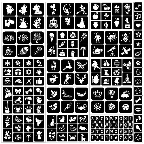 Eleanore's Diary Stencil med 16 blad, 167 stycken - tillfällig tatuering och smink för barn och vuxna - perfekt för födelsedagar, halloween, jul och helgdagar