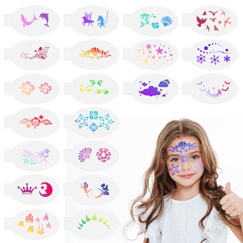 Grevosea 20 stycken barnsminkset glitter tatuering stenciler barn stenciler återanvändbara mallar för ansikte tillfälliga tatueringar för barn halloween semester fest smink