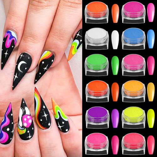 LOPHE Neon färg nagelpulver, 12 färger nagelkonst damm pigment neonfosfor, nagelpulver pigment för naglar, för gör-det-själv nagelkonst dekoration, halloween neon smink