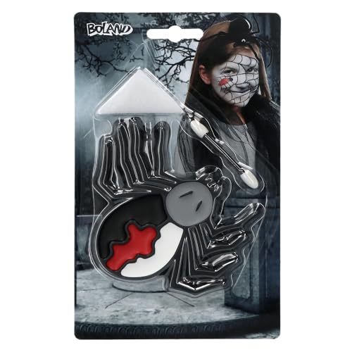 Boland 45078 – Sminkset spindelbarn, fett smink röd, svart, vit och grå, 1 applikator, 1 svamp, smink, palett, uppsättning, spindel, vampyr, smink, halloween, karneval, temafest