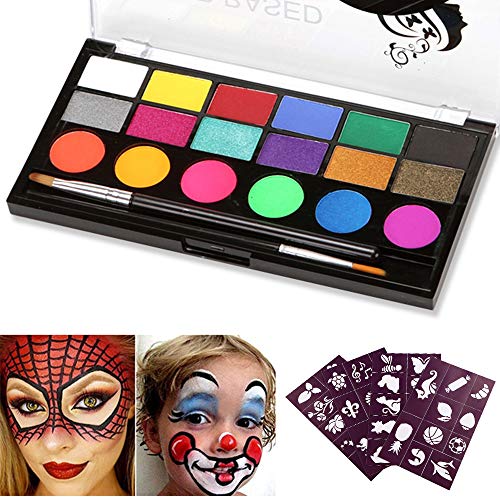 Vegena Barnsminkset, är delikat och skonsamt 18 sminkfärger 2 professionella borstar 40 stenciler vattenbaserat giftfri säker ansiktsfärg perfekt för barnfester karneval halloween smink