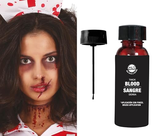 FIESTAS GUIRCA | Tät blodburk med pensel (60 ml) - Halloween-smink för skräckdräkter och läskiga fester - perfekt för specialeffekter och cosplay - röd