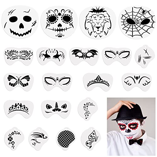 OOTSR Set med 20 stycken schabloner, mallar för ansiktsmålning och kroppsmålning, lämpliga för ansiktsfärg på fest, högtider, halloween, smink, konstmålning, återanvändbara mjuka tatueringsstenciler