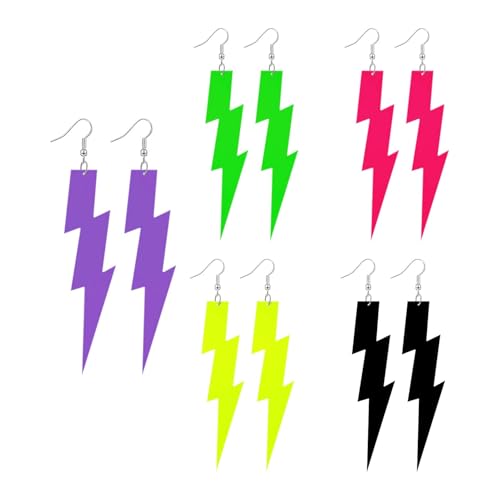 Set med 5 par färgglada neonörhängen, personliga smycken, 80-talsstil, retro, lämplig för temafester, halloween, karneval