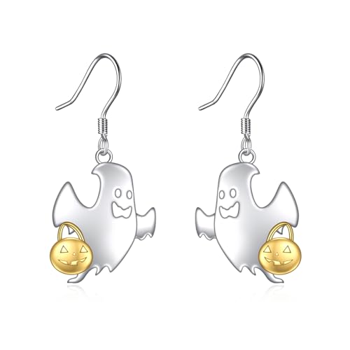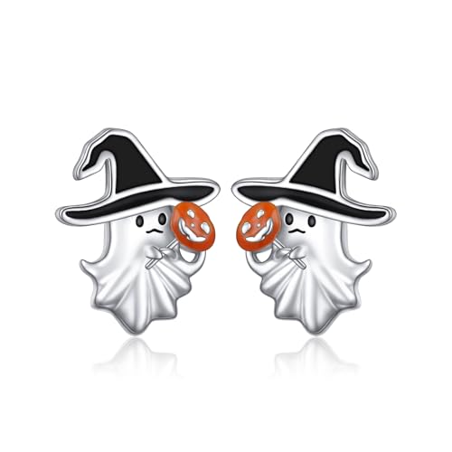 Flyow spöke pumpa örhängen 925 sterlingsilver roliga halloween örhängen för kvinnor halloween spöken pumpa smycken gåvor för helgdagar, Sterlingsilver, Ingen ädelsten