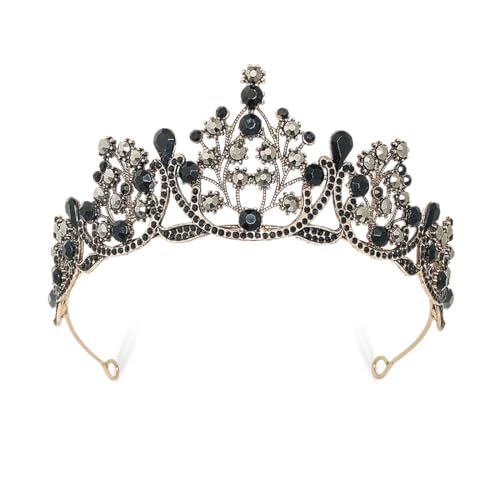 Flicka kristall tiara strass krona svart guld, halloween vintage hår krona, tiaras hårtillbehör, handmade hårsmycken, hårband smycken dekoration för kvinnor flickor