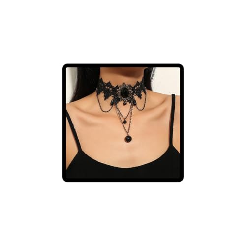 Prosy Halloween gotisk svart spets choker halsband tofs krage choker smycken justerbar för kvinnor och flickor, Metall