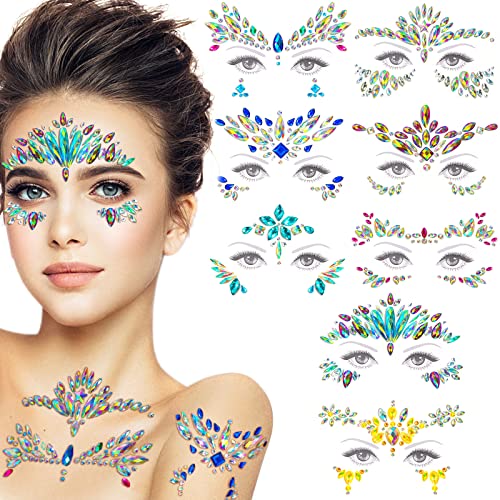 8 set strass ansikte festival outfit, strass självhäftande rave strass tillfälliga tatueringar glitter ansikte kristall smycken smycken smycken för smink fest karneval påsk halloween