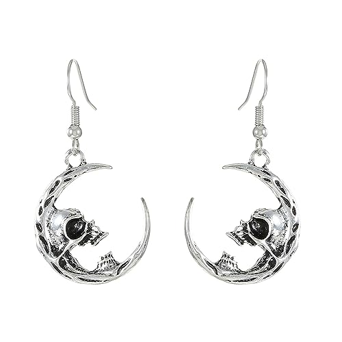 Gotisk skalle fladdermus örhängen – halvmåne skelett dinglande örhängen för män och kvinnor, punk halloween smycken, läskiga kostymtillbehör, Medium, Legerat stål, Zirkon