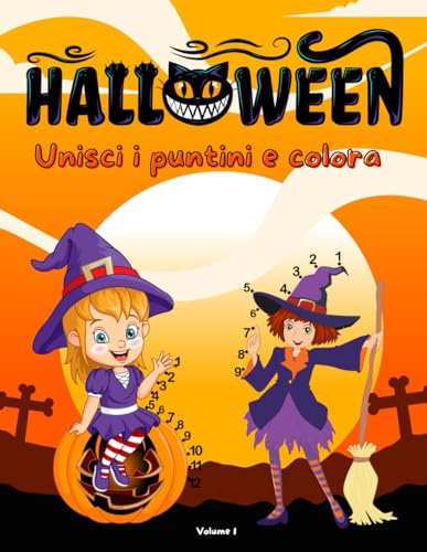 Unisci i puntini e colora, libro per bambini da 3 a 6 anni: Crea illustrazioni a tema Halloween unendo i puntini e poi colorale!