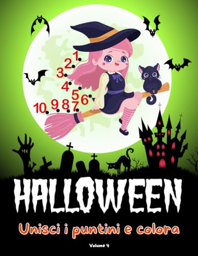 Unisci i puntini e colora, libro per bambini da 3 a 6 anni: Crea illustrazioni a tema Halloween unendo i puntini e poi colorale! Vol 4