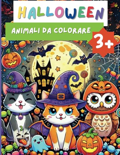 Hallowen animali da colorare: libro da colorare per bambini a tema Halloween, con foglio salva pagina, età 3+