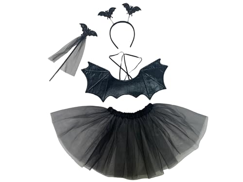 DiULi Fladdermusdräkt för flickor - bekväm halloweendräkt - mjukt tyg - lätt att ta på med realistiska vingar och kjol - för karneval, barns födelsedag, svart, Taille régulière