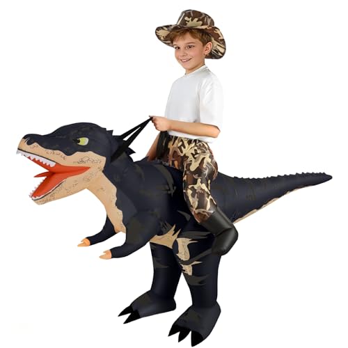 Alaoo Uppblåsbar dinosauriedräkt för vuxna, T-Rex, rolig att åka på, orange dinosaurie, halloweendräkt för halloween, jul, cosplay, maskerad, fest, 120-150cm