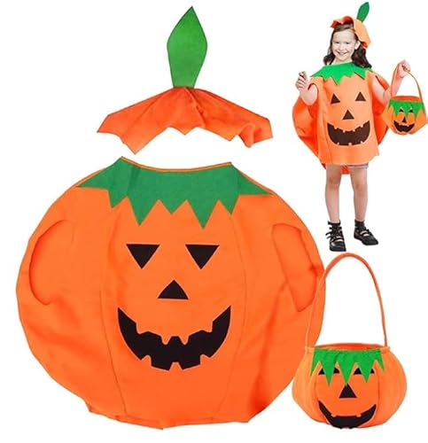 Halloween Kostym, Barn Pumpa-Dräkt Med Hatt, Mössa, Halloweendräkt Med Ficka, Cape, Karnevalskostym för Barn, Pojkar, Flickor