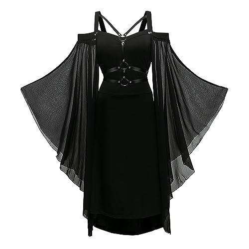 YRTBGD Gotisk damklänning, svart medeltida vintageklänning med trumpetärmar, med snörning i midjan, halloweendräkt för kvinnor, storlek M, svart