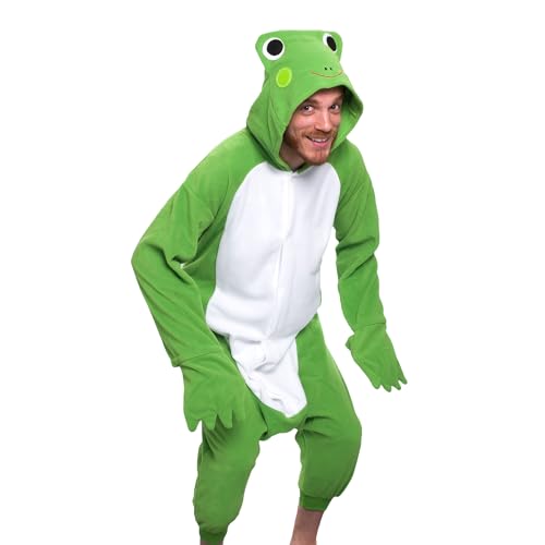 Funziez! Onesie halloweendräkt för vuxna – djur och havsdjur – plysch one-piece cosplay kostym för vuxna, män och kvinnor, padda, M