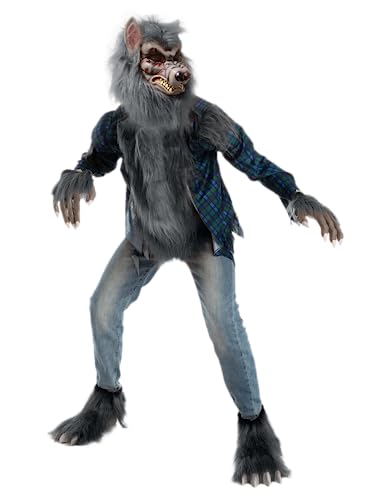 Spooktacular Creations halloweendräkt för barn, varulv, grått hår, vargdräkt med mask för barn, pojkar, flickor, halloweenutklädnad, rollspel, cosplay-fest, L (10–12 år)