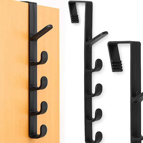 Badrumsdörrhängare för hallskåp utan borrning, 5 krokar, svart