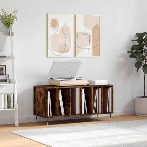 Homgoday Skivskåp med gott om lagringsutrymme vinylskivor-ställ, vinylförvaring, hallskåp, vardagsrum, skåp, bokskåp, rökt ek 100 x 38 x 48 cm, träbaserade material