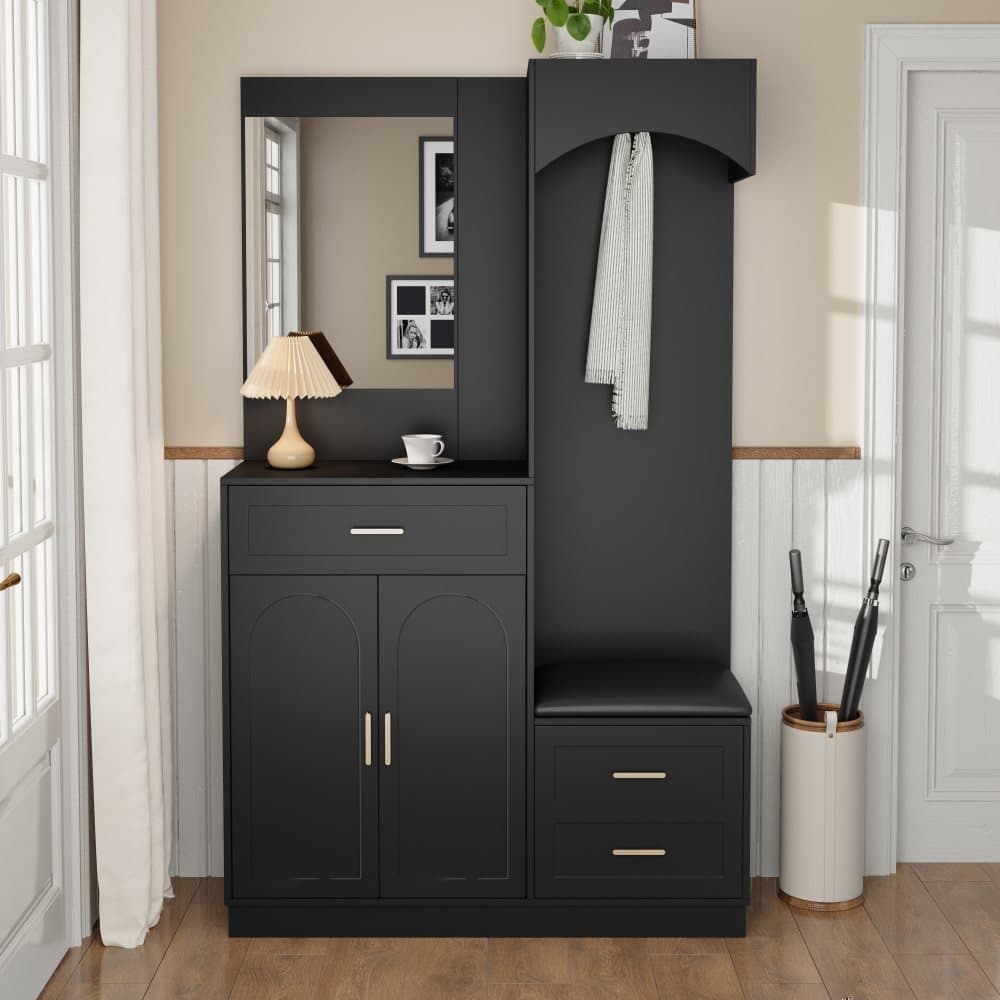 Modern kompaktgarderob med spegel, garderob och skoförvaring, multifunktionellt hallskåp för entré