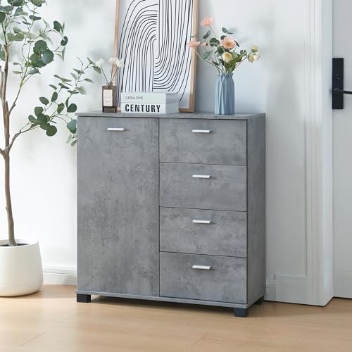 En.casa] Skänk Döbritz hallskåp multifunktionellt skåp byrå med 4 lådor Wonhroom skåp för hall vardagsrum sovrum 84 x 80 x 28 cm betongutseende