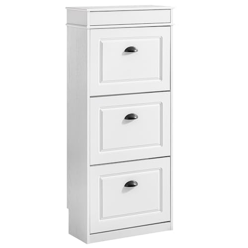 SoBuy Skoskåp, smalt med 3 klaffar – smal skoställ, justerbar skohylla för hall och entré, hallskåp med tippskydd, 53 x 118 x 24 cm, vit, vintage, träådringseffekt FSR94-WG