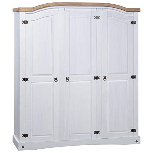 Tidyard Garderob hallskåp, förvaringsskåp, garderobsskåp, multifunktionellt skåp, garderob, välvd topp, med 3 dörrar, mexiko-stil, furu, vit
