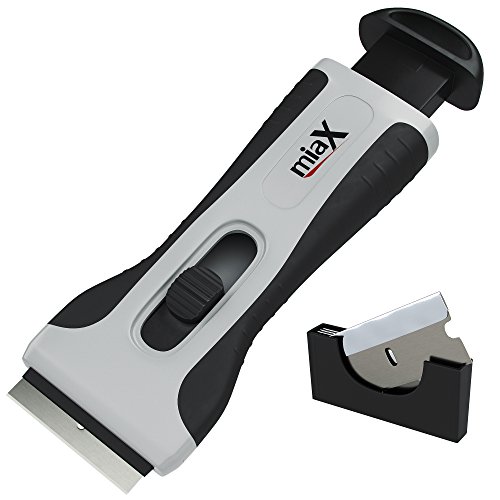 MiaX Professionell keramisk hällskrapa - din pålitliga skrapa för kök och hushåll - stabil hällskrapa med mjukt handtag - ersättningsblad integrerade i glasskrapa