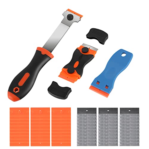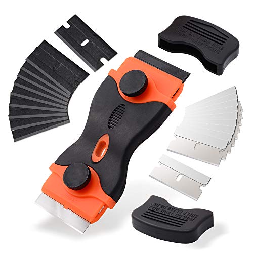 Ehdis Glassskrapa med dubbla huvuden med 10 kolstål och 10 plastblad för lim, färg, dekaler, oskärbar och ugn nyansering hällskrapa