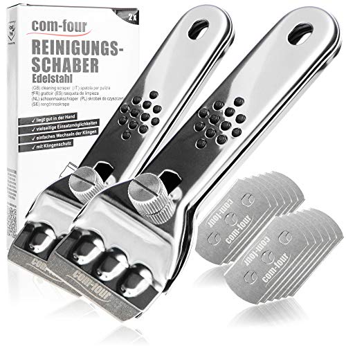 COM-FOUR® 2x keramisk hällskrapa med ersättningsblad - skrapa av rostfritt stål för köket - ceran skrapa med halkskydd och bladskydd - hällskrapa (02 stycken + 12 blad)