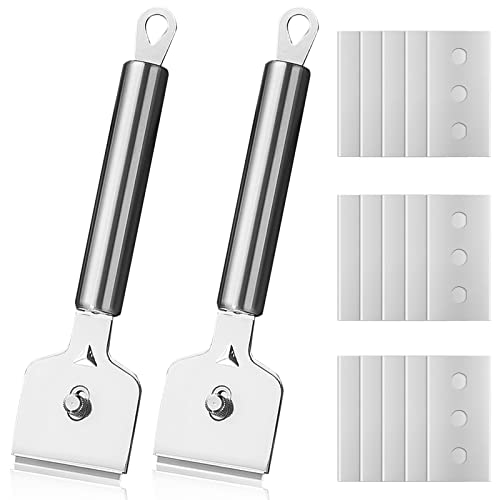 JETOP 2 stycken keramikhällskrapor i rostfritt stål, keramikhäll, repor med 12 reservblad, glasskrapa för att ta bort oljefläckar och självhäftande spår, hällskrapa för kök, spisskrapa