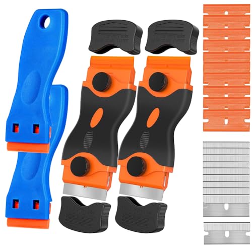 QitinDasen 2 st premium 1,5 tum rakblad skrapverktyg med 20 st plastrakblad, keramikhällskrapa, glasskrapa, hällskrapa, vinjettskrapa