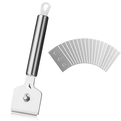 Keramisk hällskrapa, 1 st keramikhällskrapa med 18 reservblad, rostfritt stål glasskrapa för att ta bort oljefläckar och självhäftande spår, hällskrapa för kök, spisskrapa