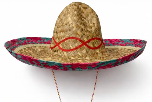 Boland 95430 – Sombrero Fiesta, diameter 48 cm, halmhatt med färgat brätte, hatt, huvudbonad, festa-fest, kostym, karneval, temafest