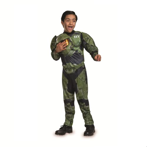 Disguise Master Chief Costume for Kids, Officiell Halo Costume Jumpsuit och huvudstycke, barnstorlek Medium (7–8)