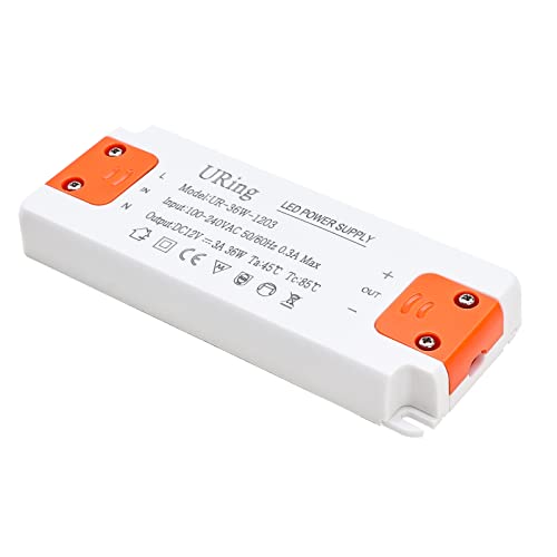 URing LED-transformator 1-36 W strömförsörjning 230 V till 12 V, DC utan flimmer varken buller, lågspänning för G4 MR16 GU5.3 halogen
