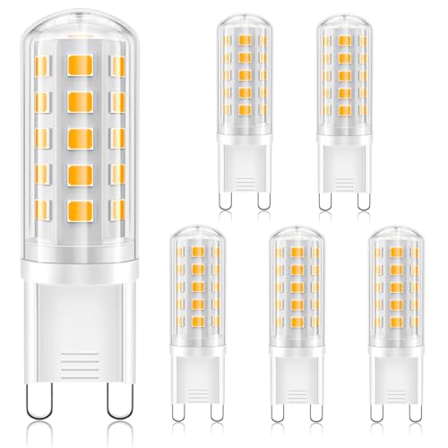 Akynite G9 LED Bulbs 4W Warm White 2700K, Equivalent to Bi-Pin Halogen Bulb 33W 40W, 400LM, 230V G9 LED Capsule Bulb for Chandelier/Wall Lamp, Not Dimmable, No Flicker, 6 Pack