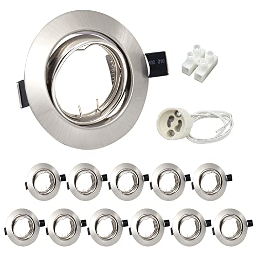 Wondlumi 12x infällda spotlights GU10 infällda lampor vridbar rund installationsram 68mm LED spots 230V borstat rostfritt stål infällda spots ram inklusive GU10 uttag för LED eller halogen