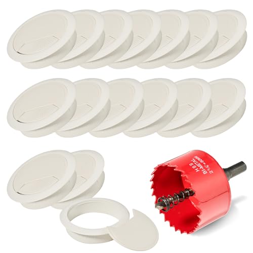 DuDuZui 6 stycken 60 mm vita skrivbordskabelgenomföring, kabelhål för skrivbord organisera kontors- och hemarbetsplatskabel, med 1 hålsåg (60 mm, vit)