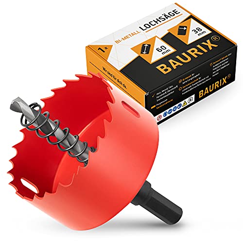 BAURIX® Bi-Metall Hålsåg Ø 60 mm – Hålsåg för Trä, Metall, Plast, Gips & Rostfritt Stål – Stark och Hållbar Hålsåg för Borrmaskin – Perfekt för Elinstallationer & Snickeriarbeten