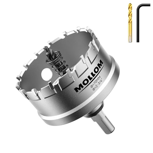 Mollom (2-3/4''|70mm) kraftig hålsåg i hårdmetall med 2 pilotborr, hålskärare skär rostfritt stål, mjukt stål, järn, koppar, mässing, plast