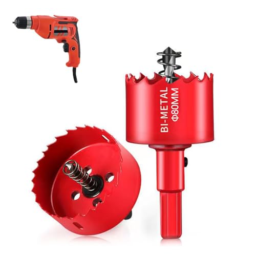 Ihomepark Hålsåg 80 mm, M42 HSS hålborrsats bimetall med sexkantsaxel och centrerande metallborrar, borrkronor set för metall, järn, aluminium, trä, gips, plast, fiberplattor, röd
