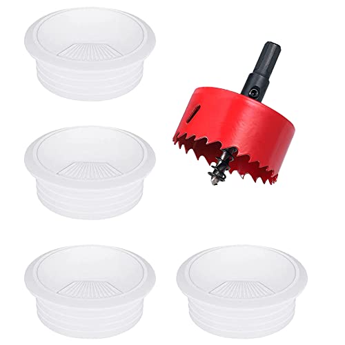 4 stycken skrivbordskabelgenomföring, 80 mm sladdhål för skrivbord med hålsåg, kabeldragning för intryckning, hålskydd sladdhål för skrivbord, vit