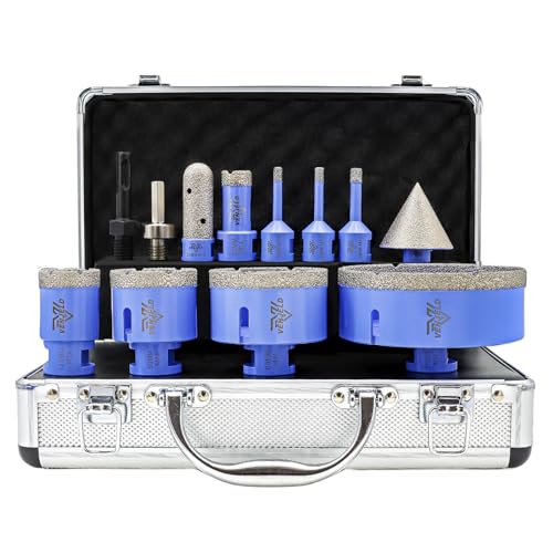 HIGHDRIL Diamantborrkronsats – 6/8/10/20/25/28/32/35/45/50/65 mm diamantborrkrona, hålsåg med trekantskaft, 11 stycken för porslin, keramik, kakel, granit, marmor, torrborrning