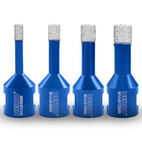 HERZO Diamantkakelborr 6, 8, 10, 12 mm – 4 stycken M14, diamantborr, hålsåg för kakel, porslin, keramik, marmor, granit, hål, för vinkelslip