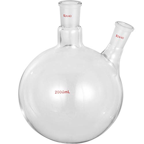 VEVOR Rund bottenflaska 2 000 ml mottagande borosilikatglas reaktionsflaska 2 halsar kokande flaska med 24/40 standard avsmalnande markfogar flaska rund botten för vakuumdestillationsapparat, vit
